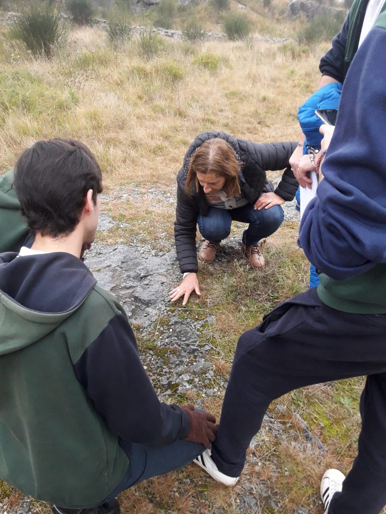 Los chicos y la profe Silvia Wichman realizando una inspección de suelos en El Calvario