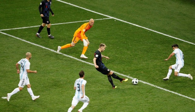 Desde el primer tiempo se observaron fallos en la salida de los defensores argentinos, esta situación se vio determinante en el primer gol croata, a los 53’ de partido, un pase de Mercado hacia Caballero, quien falla al intentar devolver el pase y le deja la oportunidad clara a Rebic que, de volea, marcó el 0-1.