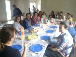 Llegó el momento del almuerzo. Consistió en chorizos, cerdo y carne, con variedad de ensaladas y bebidas; como postre, helado bañado en chocolate con guindas o praliné. “Bienvenidos, desde el Consejo creíamos que este espacio de intercambio para los profes, era algo que nos debíamos”, dijo Virginia, quién ofició de anfitriona.