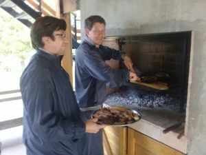 El asado estuvo a cargo de Carlos Kruger, profesor de Educación Física, con la asistencia del dueño de casa, Pablo Griffioen.