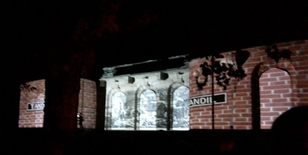 Finalmente se invitó a los presentes a ubicarse en la calle Fuerte Independencia de cara al lado izquierdo del Palacio Municipal, donde se hizo una proyección audiovisual (mapping) con imágenes de sucesos históricos de Tandil, realizada por Guillermo Dillon y el grupo MapDillon, con las voces de Víctor Laplace, María Inés Massa y sobre un guion de Elías El Hage.
