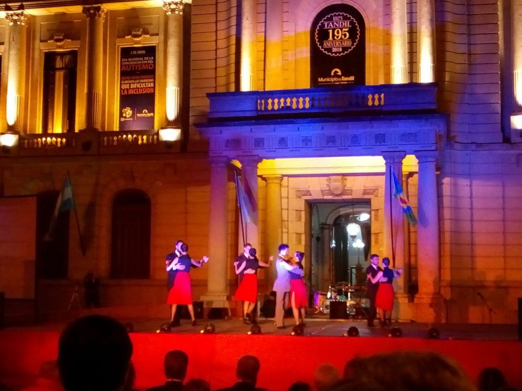 A las 19:30, el grupo folclórico Ofrenda empezó a tocar para después dar entrada a los conductores, Rodrigo Revillo y Andrea Sánchez que dieron inicio formal al acto, introduciendo al pianista del Trío de Cámara de la UNICEN, José María Carotti, y la cantante Gloria Aguilar, que interpretaron el Himno Nacional Argentino. Posteriormente, se presentó el Ballet de Danzas Argentinas de la UNICEN junto con la Compañía Municipal de Tango.