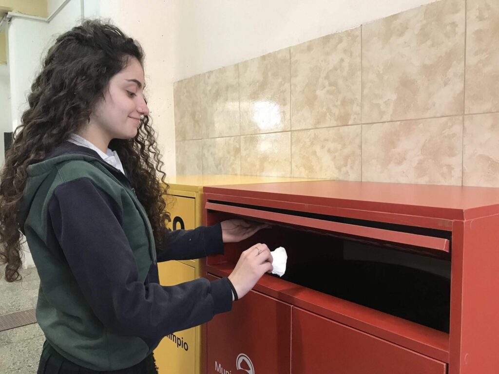 Continuando con el proyecto medioambiental impulsado por la profesora de la institución Lourdes Apellaniz, en nuestro colegio se instalaron cestos de reciclaje de residuos, que otorgó el Municipio de la ciudad.