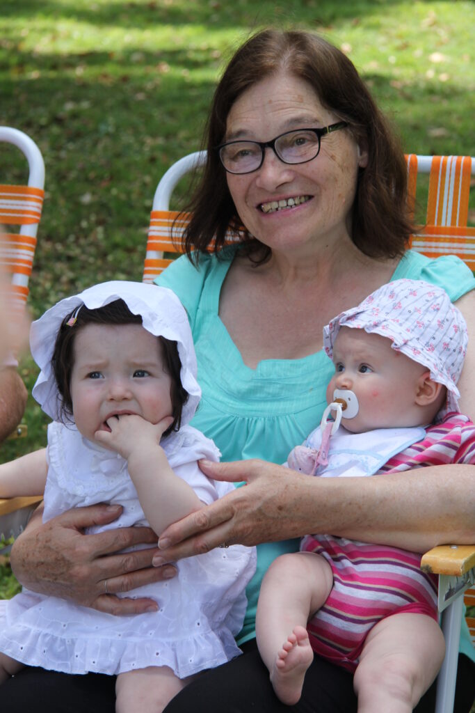 Foto tomada en 2013 en la ciudad de La Plata. Se festejaba el 1 año de Olivia (la primer nieta mujer de Julia). En la foto en brazos de Julia están Abigail y Juliana.