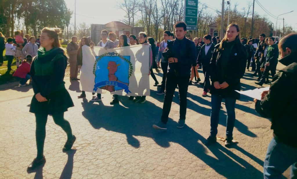 Una vez llegado el viernes, se dio inicio al desfile cívico-militar anual de la ciudad. La mañana del 25 se presentaba cálida, el sol brillaba en un hermoso cielo despejado. La escuela nos citó a las 10:45 de la mañana, pero ya había agrupaciones que hacían presencia desde más temprano. El intendente Miguel Ángel Lunghi presenciaba el despliegue desde el palco que estaba ubicado delante de la entrada del Club Atlético Ferrocarril Sud.