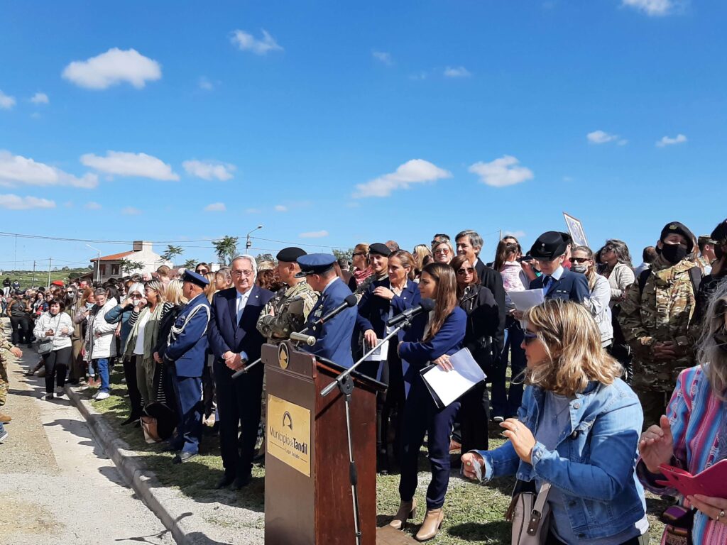Entre todas las autoridades que asistieron, el intendente Miguel Ángel Lunghi dio a todos los presentes un discurso realmente conmovedor, en el cual dijo que no hay ex combatientes ni ex Malvinas siempre van a existir en nuestras memorias. No solo se pelea con el fusil, sino con el papel y la memoria. También, el Presidente del Centro de Veteranos de Tandil Héctor Murua en su discurso pronunció unas profundas palabras: “Malvinas está presente en el aquí y en el ahora, gloria y honor a los que combatieron por nosotros, gloria y honor a los que ahora están en el cielo”.