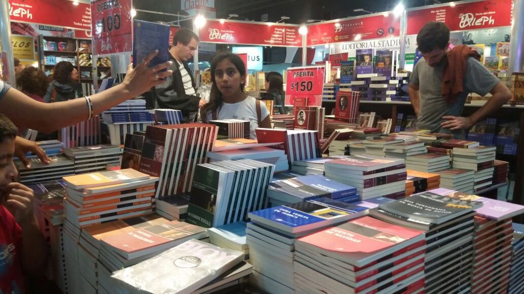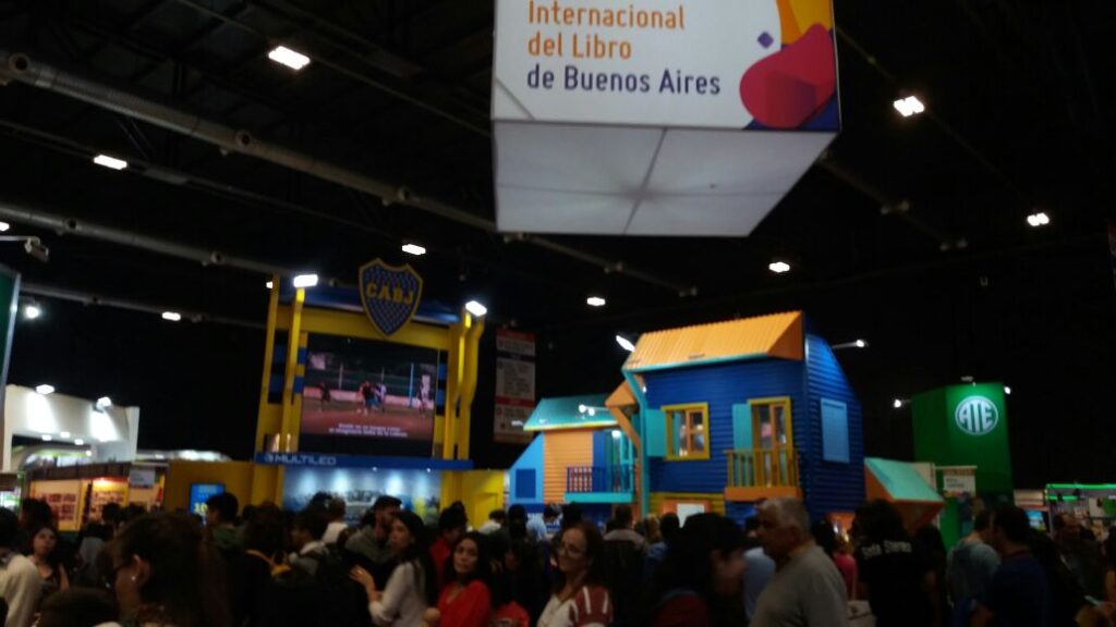 Cuando ingresábamos a la Feria junto con la cantidad de personas que habían aprovechado el feriado puente del pasado día del trabajador, nos encontramos en el pabellón ocre donde se habían ubicado los stands de las diferentes provincias de Argentina, y había lecturas y charlas temáticas; algunos clubes como el Club Atlético Boca Juniors, que en su stand habían simulado la Bombonera y representado los famosos conventillos pintados de colores de Caminito; la Asociación Atlética Argentino Juniors que había recreado su estadio, junto con gigantografías de sus jugadores más famosos; la Biblioteca Nacional Mariano Moreno tenía su propio stand y en ella había mucha literatura argentina, así como clásicos y también algunos libros que relataban las exposiciones que habían estado durante el verano en el Museo de la Lengua y el Libro; también había un salpicado de stands de diferentes asociaciones con propuestas culturales, lecturas para niños y una agenda muy activa. A medida que se iba avanzando por los pabellones se podían ver los stands de librerías y editoriales independientes con propuestas de autores muy innovadoras y también no faltaban las librerías de clásicos, los stands de cómics y la literatura infantil con ofertas de no creer.