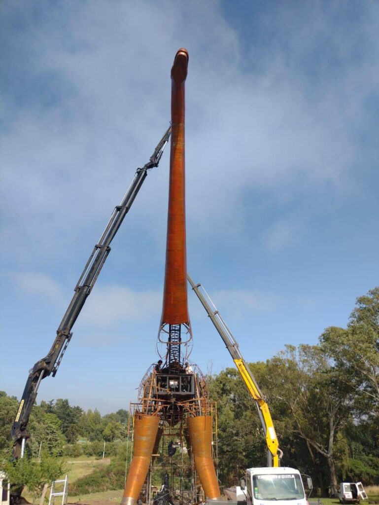La construcción del saurópodo ha generado empleo y ha impulsado la economía local. Como explica José Luis, los Herreros del Arte fueron ayudados en el diseño de la estructura por el ingeniero Carlos Pannosi, quien designó qué materiales debían utilizarse de acuerdo a los planos originales de los herreros.