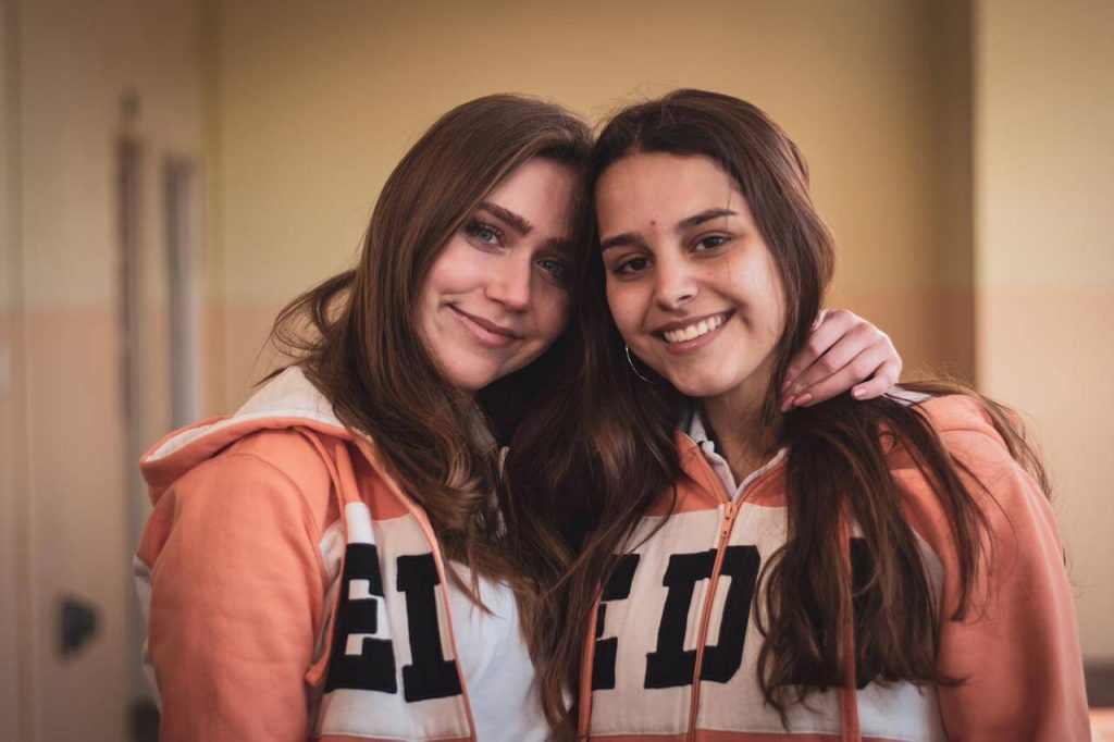 Zuzanna con el buzo de egresados, acompañada por la alumna Sol Barayian de 6to año.