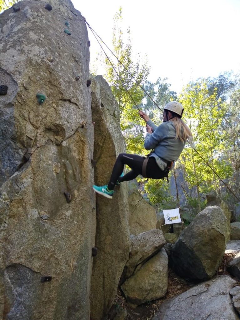 La actividad llamada rappel es un sistema de descenso por cuerda utilizado en superficies verticales. Se utiliza en lugares donde el descenso de otra forma es complicado, o inseguro. Es el sistema de descenso autónomo más ampliamente utilizado, ya que para realizar un descenso solo se requiere: conocer la técnica adecuada, llevar puesto un mínimo equipo y una cuerda. Los alumnos comenzaron con una pared de iniciación donde aprendieron la técnica y luego pasaron por una pared más alta.