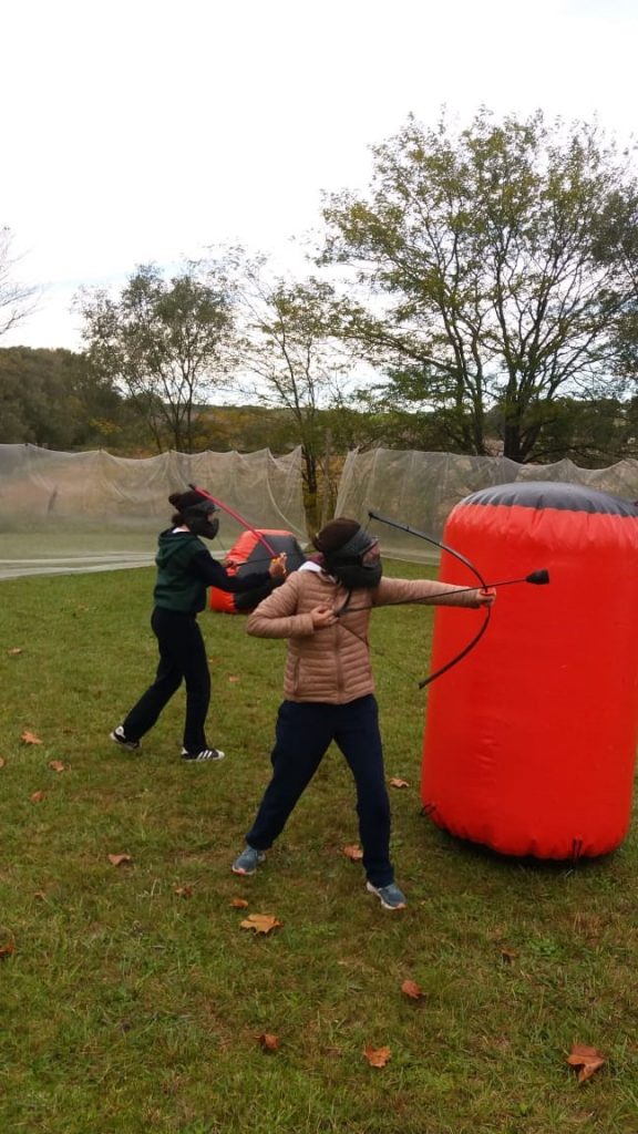 La última fecha designada para 5to y 6to fue el 29 del correspondiente mes, de similar estructura, pero variando las dificultades de las actividades ya que los chicos ya tienen mayoría de edad. Este grupo participó de Guerra de arcos y recorrido de tirolesas. Archery war es una actividad sumamente divertida, donde se debe trabajar en equipo. Consiste en eliminar a los integrantes del equipo contrario en un lapso de tiempo, dentro de una cancha con obstáculos que actúan como zonas “seguras”. Utilizando arcos, flechas (con punta de goma espuma, específicamente armadas para esta actividad) y máscaras obligatorias, el equipo que mejor estrategia utilice será el ganador. Dos profesores de Canopy están dentro de la cancha junto a los alumnos.