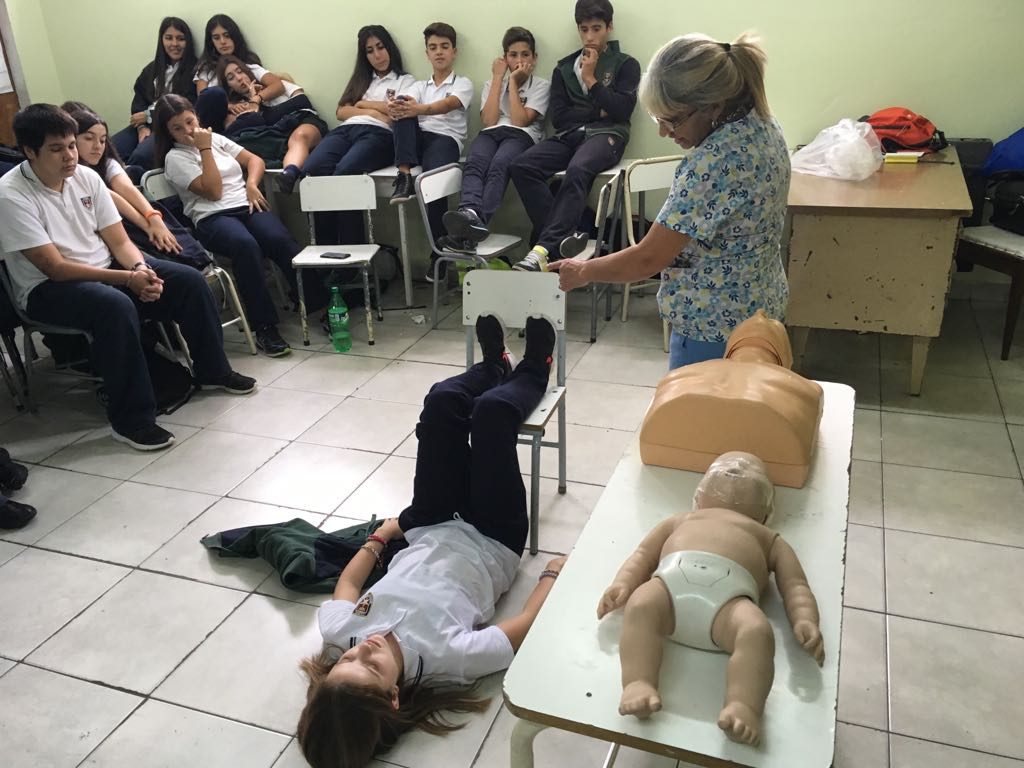 El pasado jueves 5 de abril, los alumnos de tercer año del Colegio Secundario Estrella de Belén tuvieron una charla de capacitación sobre reanimación cardiopulmonar (RCP), a cargo de Graciela Churazzi, enfermera del Hospital de Niños Dr. Debilio Blanco Villegas y madre de una alumna de tercer año.