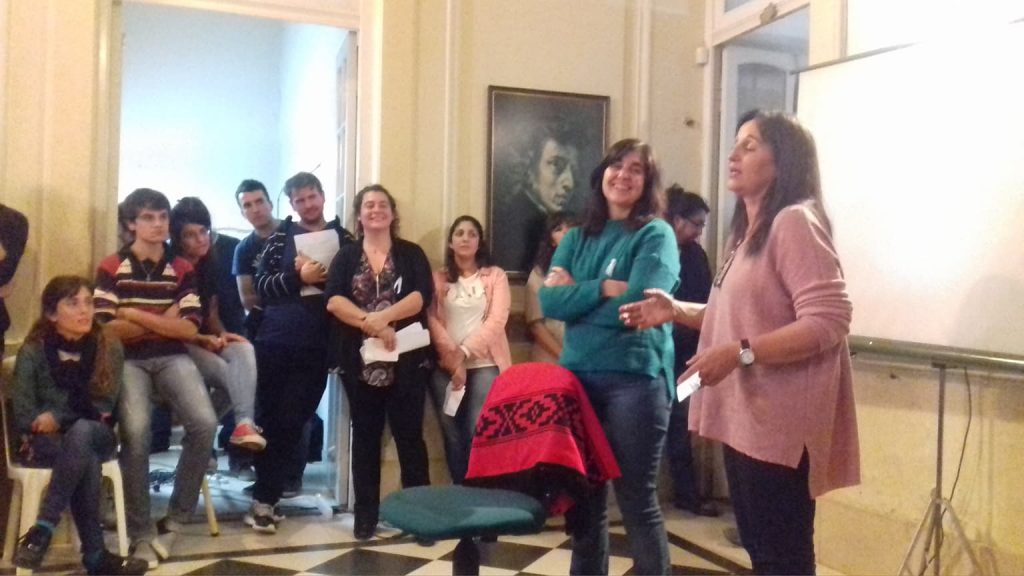 Después de las palabras de Annele, se invitó a la gente a que entrara al aula 4, en donde ella siempre dio clases, para cerrar el festejo con un brindis y torta.